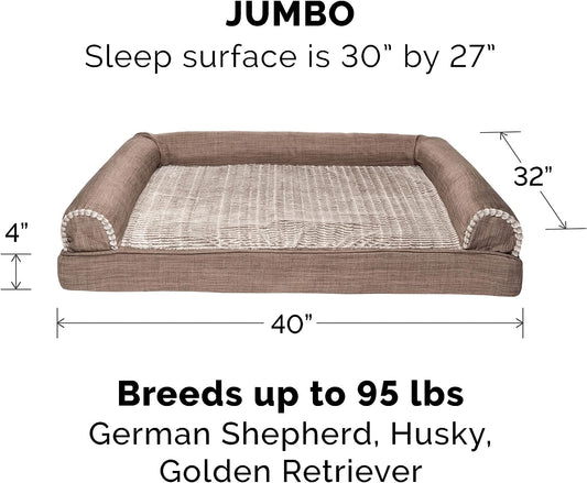 Plush Dog Bed: Luxe Faux Fur & Linen Sofa-Style Dog Bed for Dreamy Rest & Sweet Snuggles | Orthopedic Support, Plush Design, and Easy-Care Luxury for Your Furry Amigo!