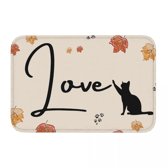 Spooky Black Cat Love Non-Slip Indoor Doormat | Halloween Welcome Mat | Fall Season Home Decor Rug | Feline Friends Living Room Carpet