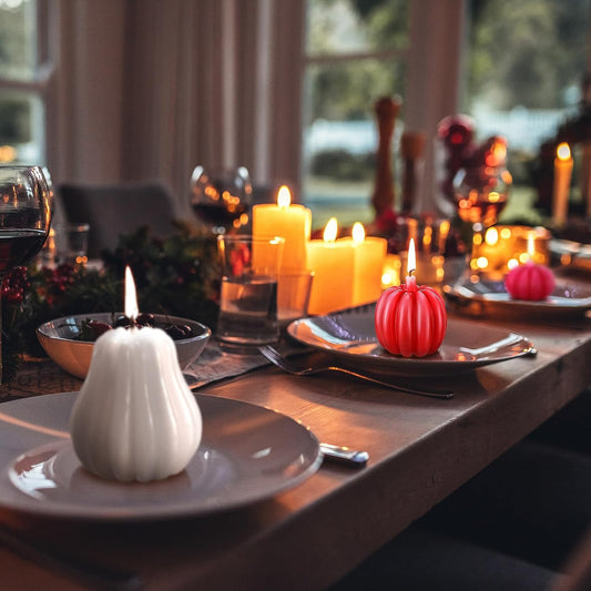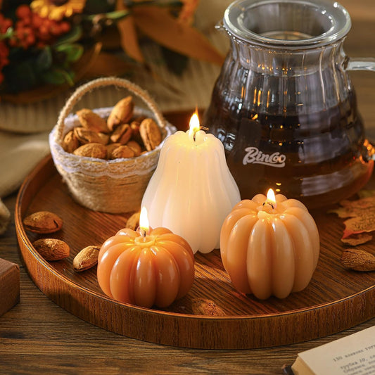 Soy Wax Candles: Handmade RED WHITE Pumpkin Shaped Scented Candles | Pumpkin Dreams: 3 Handmade Fall Soy Candles in Pastel Hues π