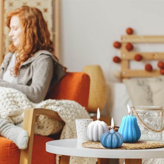 Soy Wax Candles: Handmade BLUE Pumpkin Shaped Scented Candles | Pumpkin Dreams: 3 Handmade Fall Soy Candles in Pastel Hues π