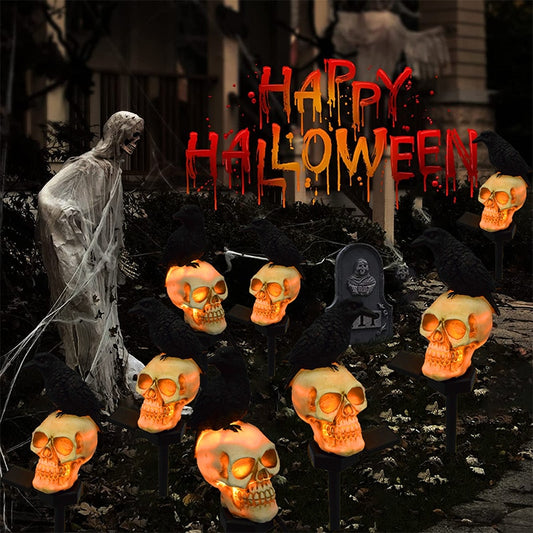Haunting Halloween Solar Lights - Skull Head, Crow, and Creepy Atmosphere | Outdoor Waterproof Garden Decor for a Spine-Chilling Halloween Party