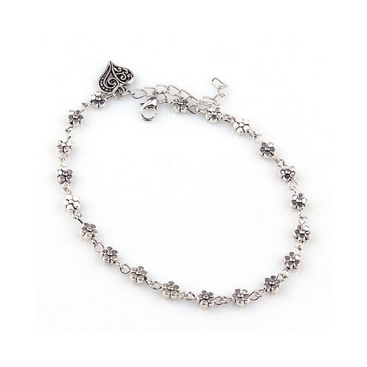 Vintage-Inspired Lea Anklet - Heart and Daisy Design for Elegant Charm