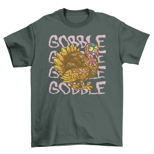Cool t-shrit design featuring a turkey with the quote "Gobble, gobble, gobble".
